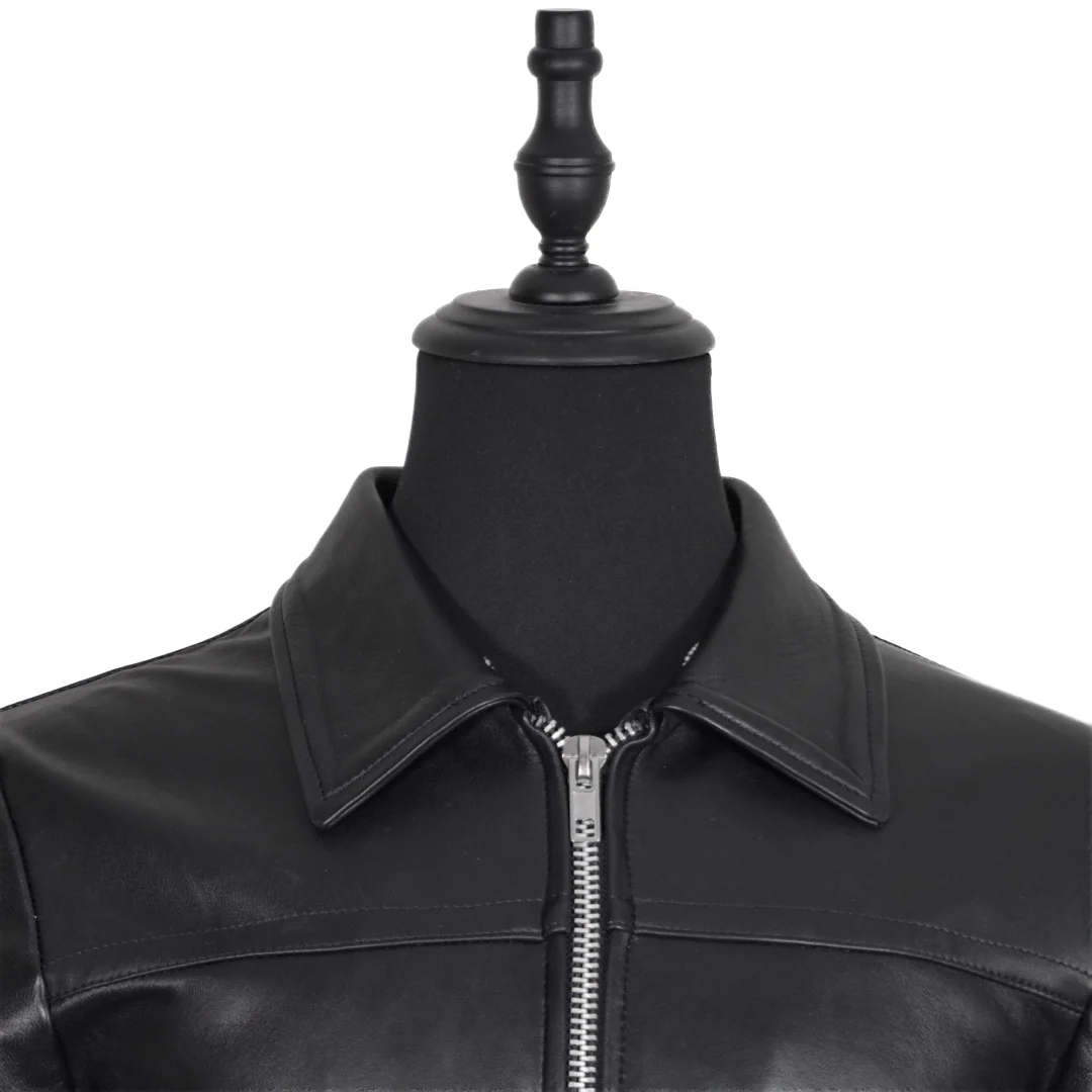 «Esta chamarra de piel genuina de corte croped es perfecta para cualquier atuendo. Su color negri En piel te mantendrá abrigado y elegante en cualquier ocasión. Confeccionada con materiales de alta calidad, esta chamarra es duradera y resistente para un uso diario. Añadirá un toque de estilo a tu armario. Cuello desmontable en 2 colores