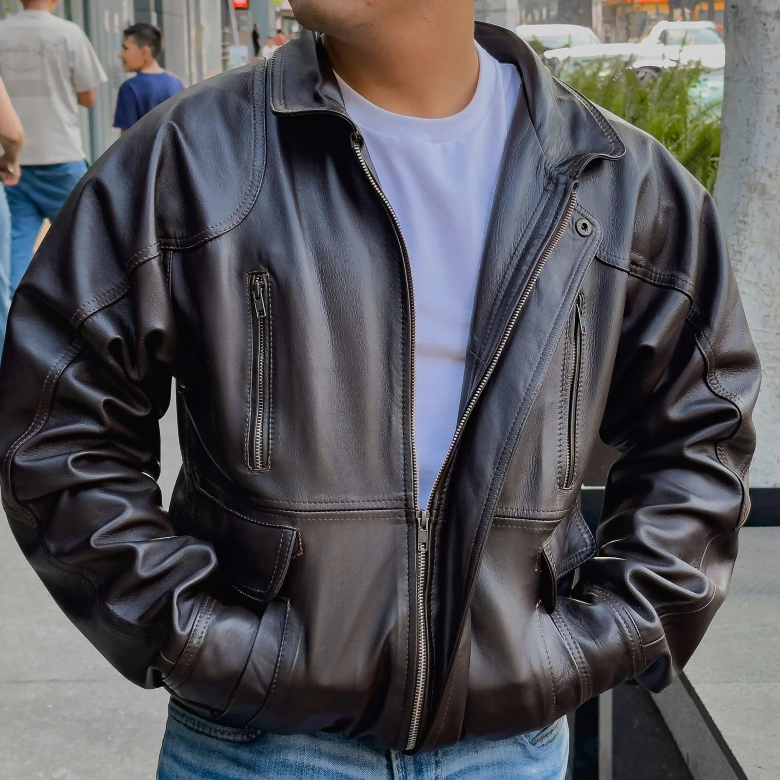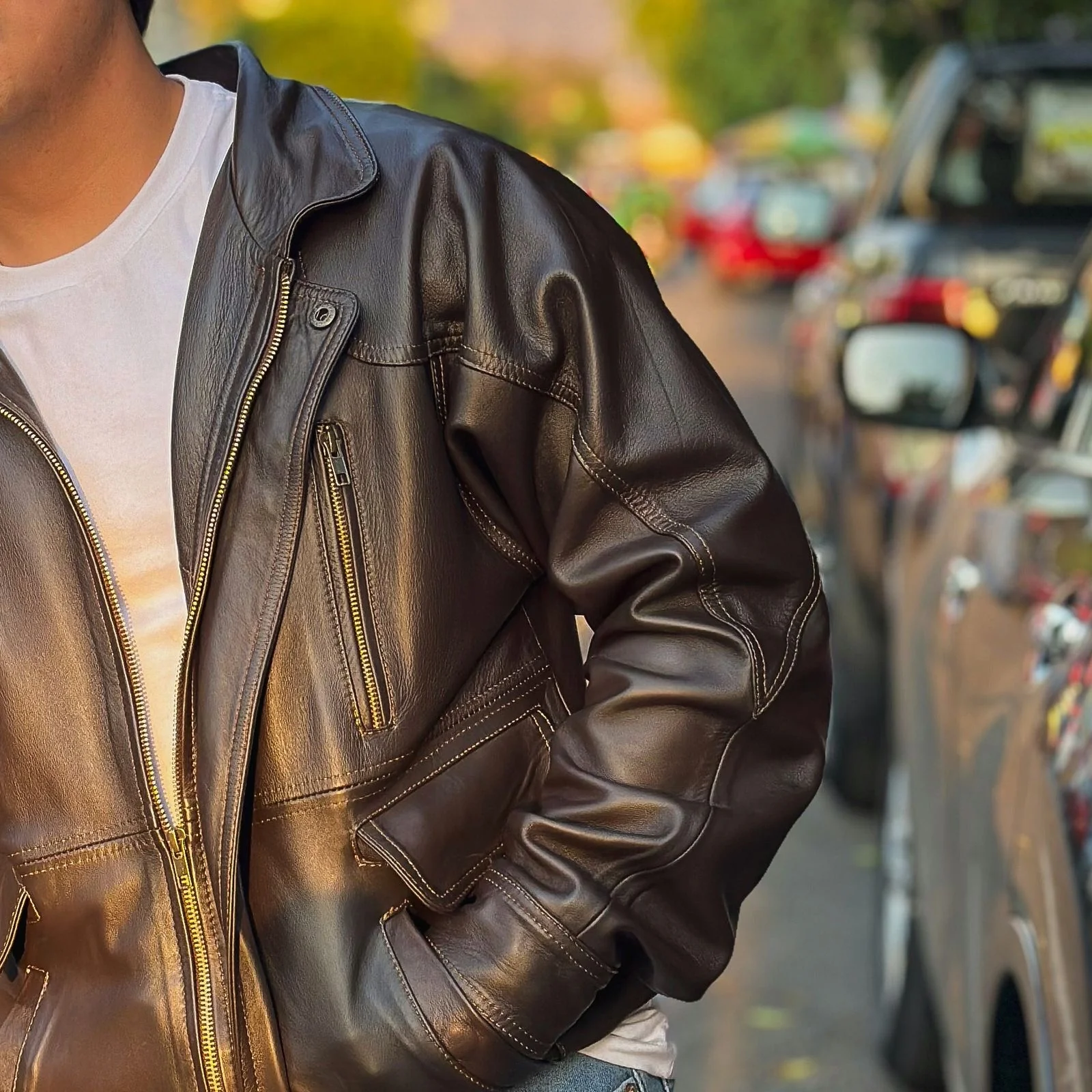 Esta chamarra Berlin brown está hecha de una suave piel de borrego y tiene un corte oversize boxy. Con su estilo moderno y cómodo, te mantendrá abrigado y a la moda en los días fríos. Destaca con esta prenda única y sofisticada.