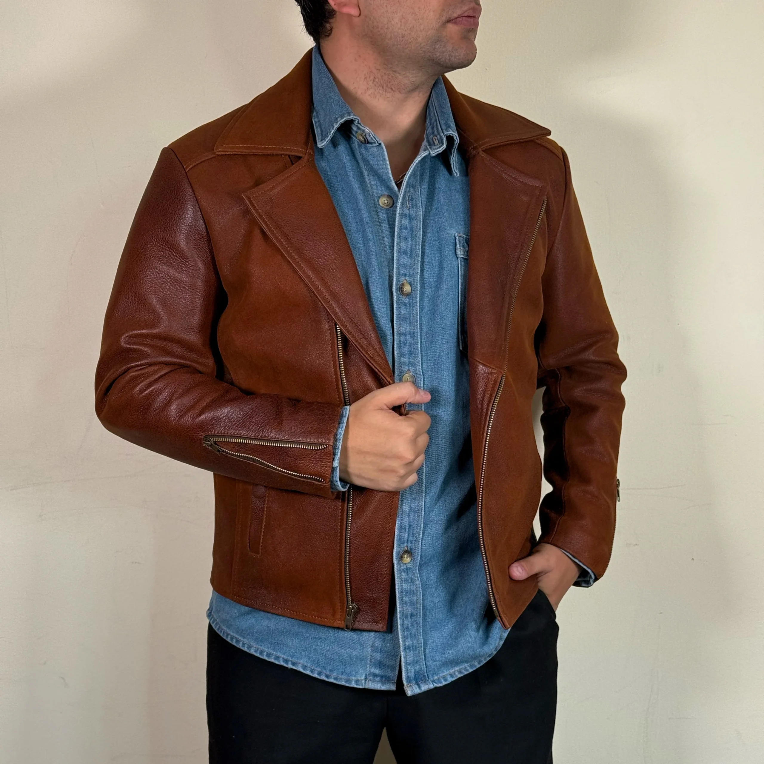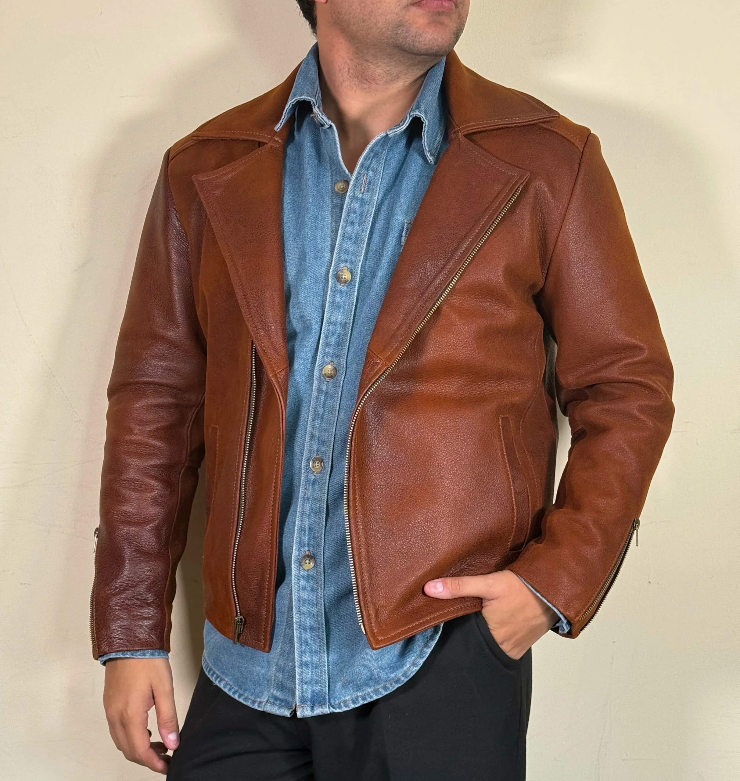 Nuestra chamrra biker de piel mas basica, menos es mas en este modelo ¡¡¡