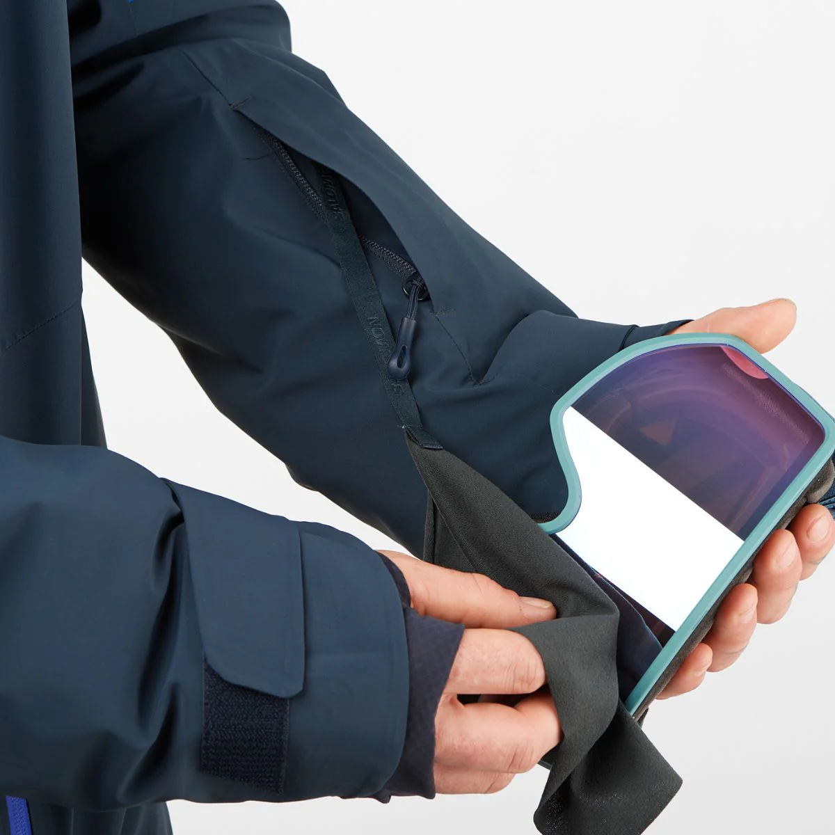 Bolsillo interior con tejido interior suave para impedir que las lentes de la máscara se arañen.