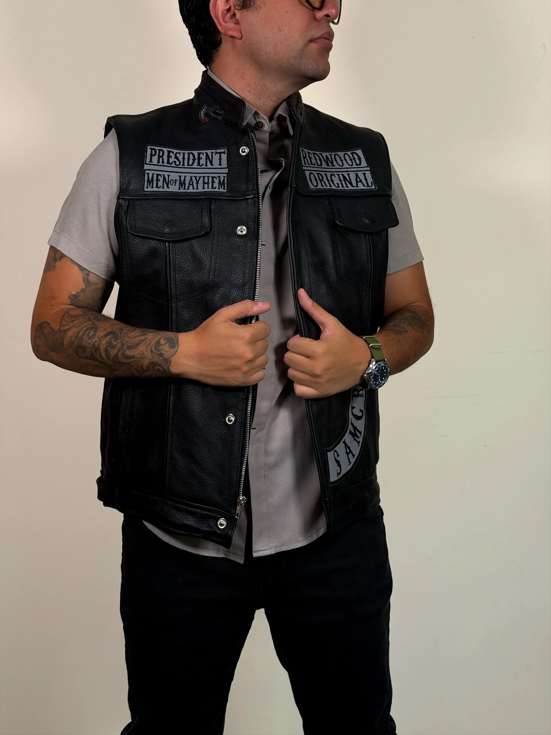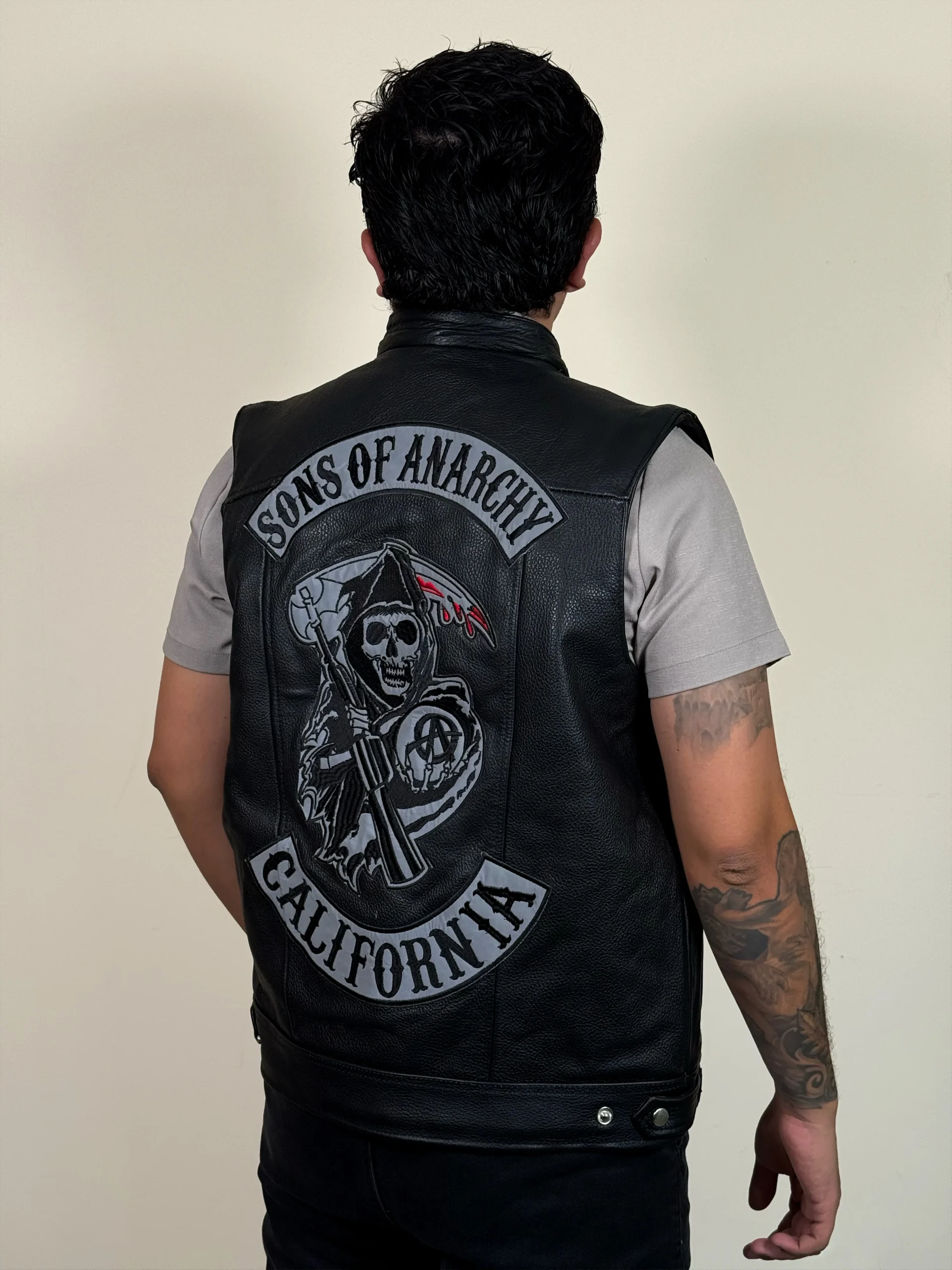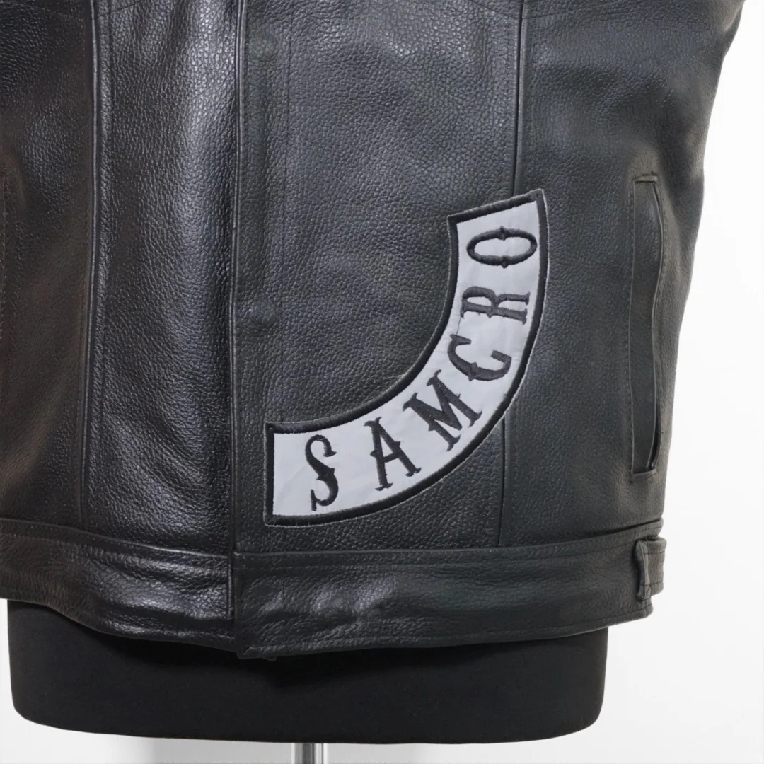 Este chaleco Anarchy negro está confeccionado con piel genuina de alta calidad y cuenta con parches bordados reflectantes, lo que lo convierte en una opción elegante y segura. Protege tu torso sin sacrificar tu estilo con este chaleco que garantiza visibilidad en la oscuridad.