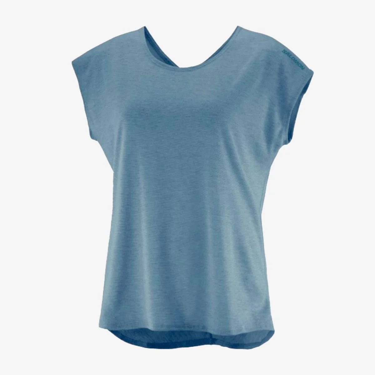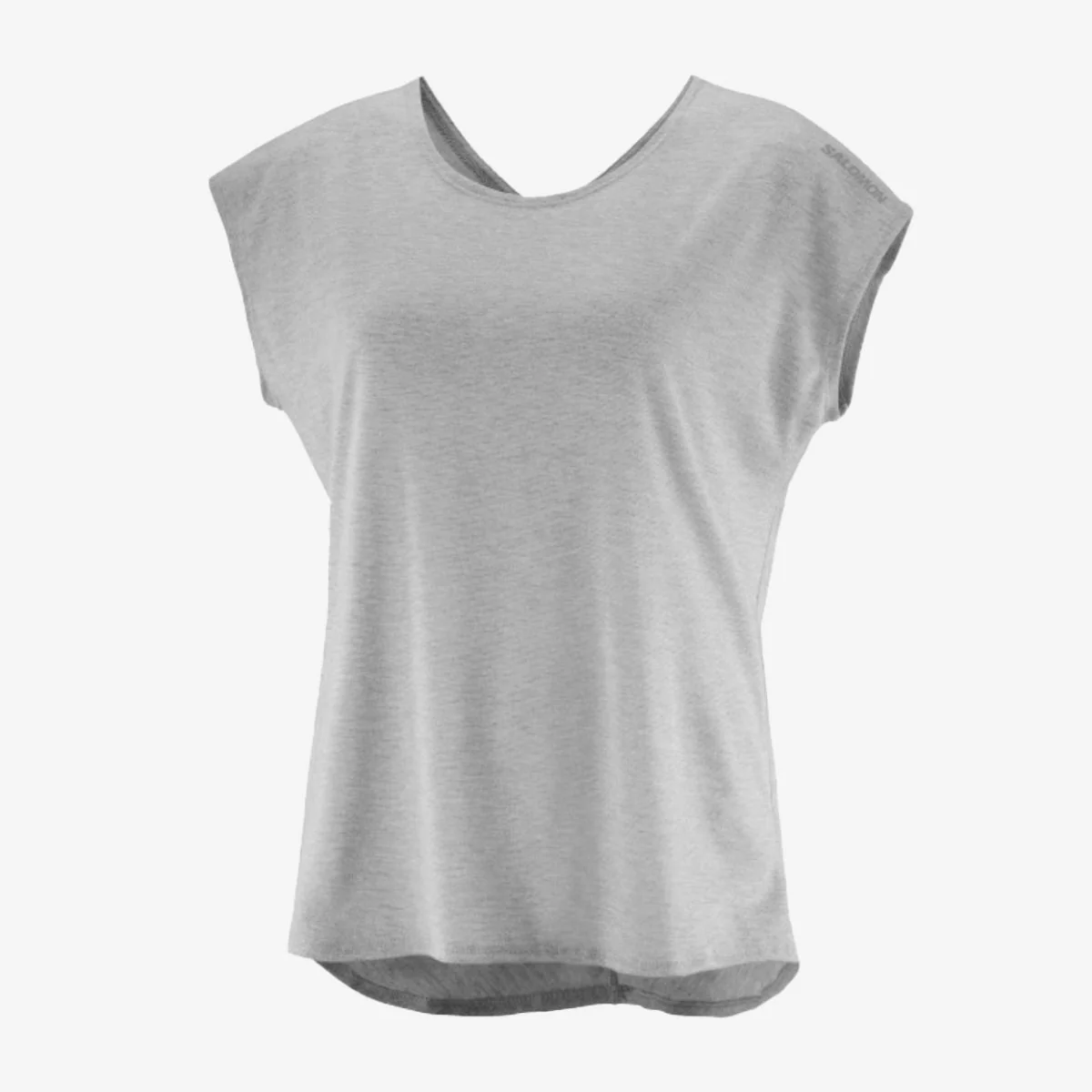 Remera de algodón jaspeado manga corta para mujer, con cuello redondo.