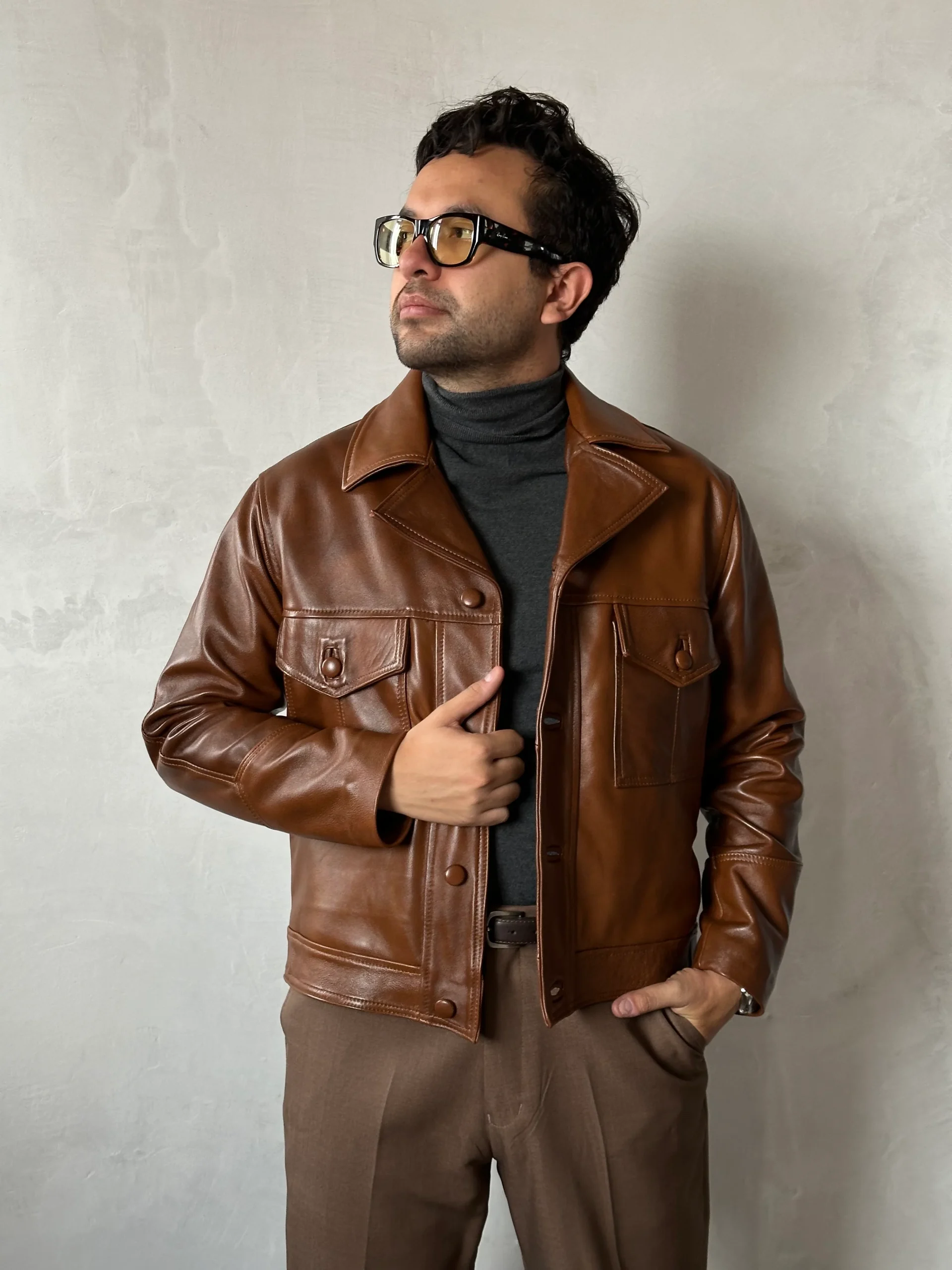 La chamarra Dicaprio caramelo está inspirada en el famoso personaje de Leonardo DiCaprio y está hecha de piel genuina. Con un diseño clásico y materiales de calidad, esta chamarra es la combinación perfecta de estilo y durabilidad, brindando una apariencia elegante y resistente al mismo tiempo. ¡Añade esta chamarra a tu guardarropa para un look sofisticado y atemporal!