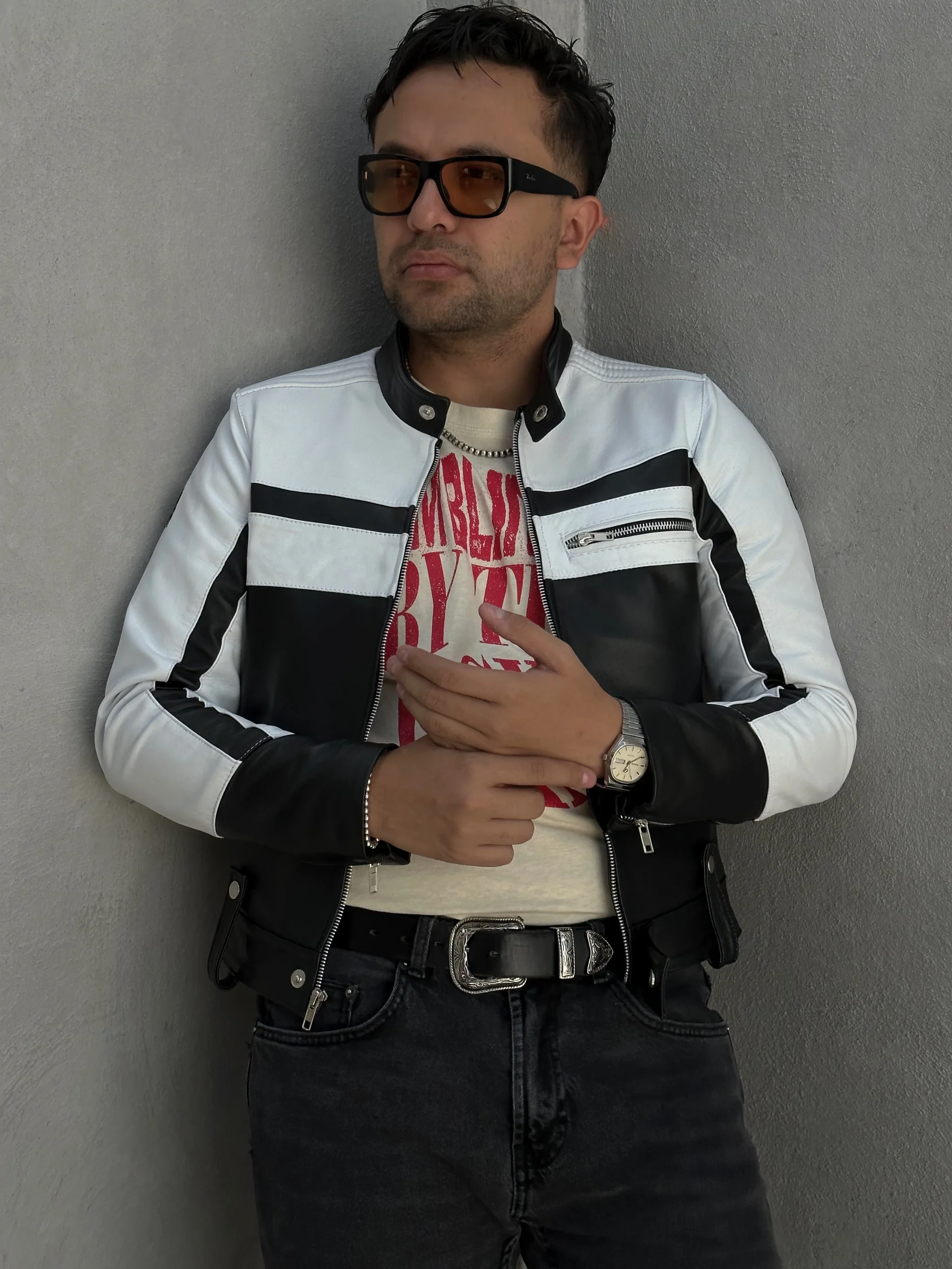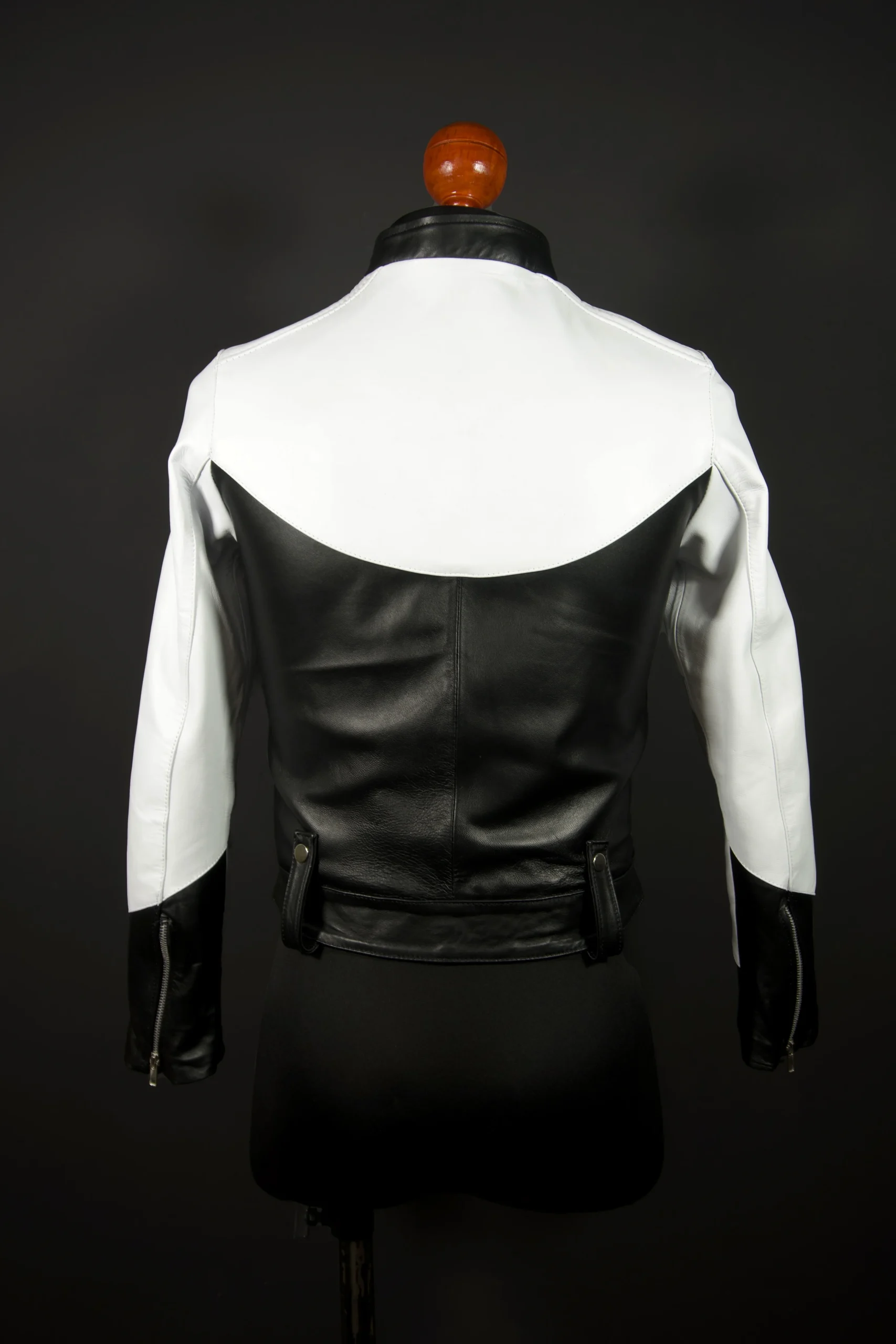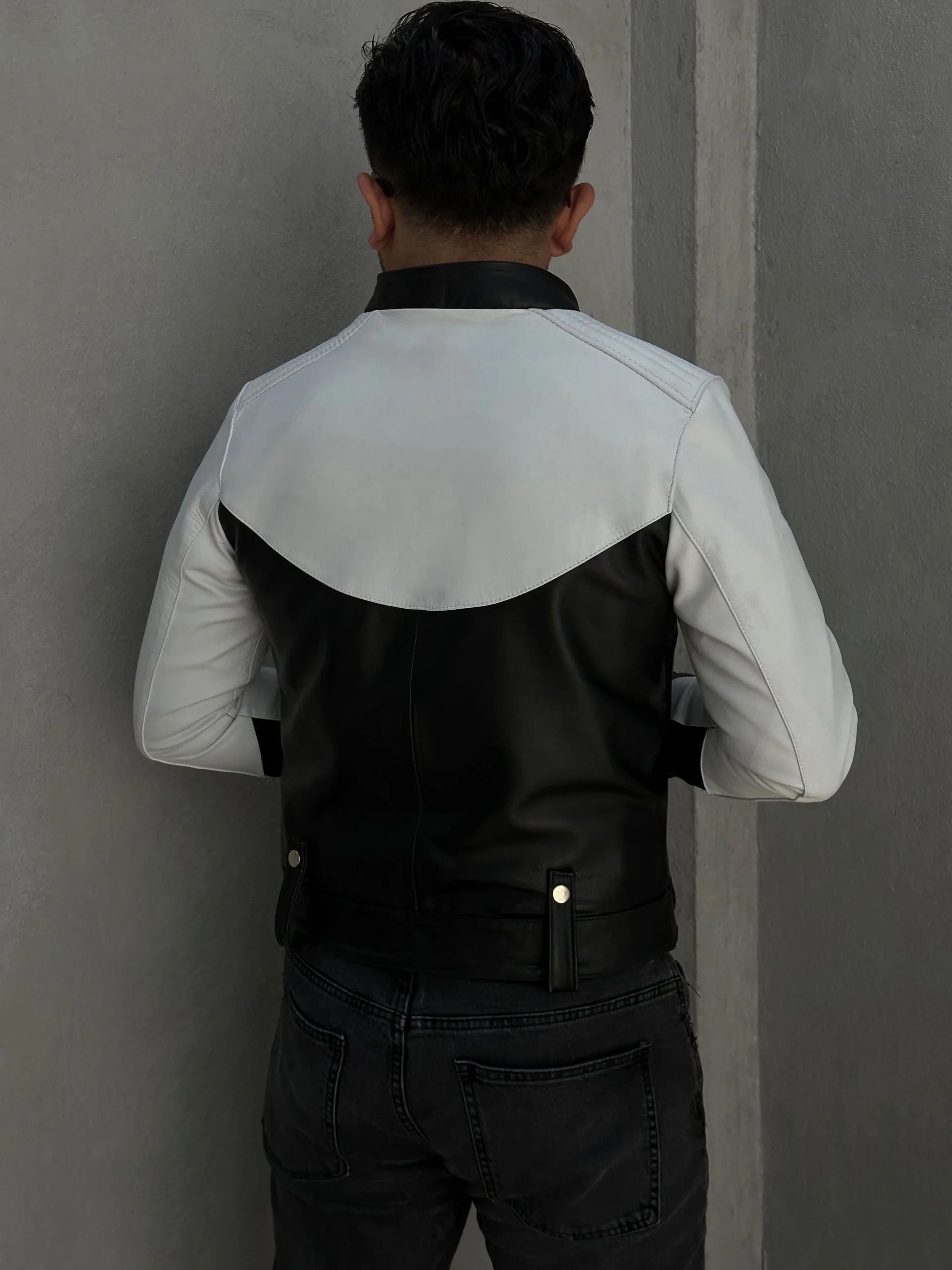 La chamarra Eren Black & White es elaborada con un corte racer croped y piel genuina de primera calidad. Cuenta además con detalles en los puños y la parte inferior de la prenda, para un look único. Esta chaqueta te ofrece el diseño característico de una chaqueta Racer, con un acabado innovador.