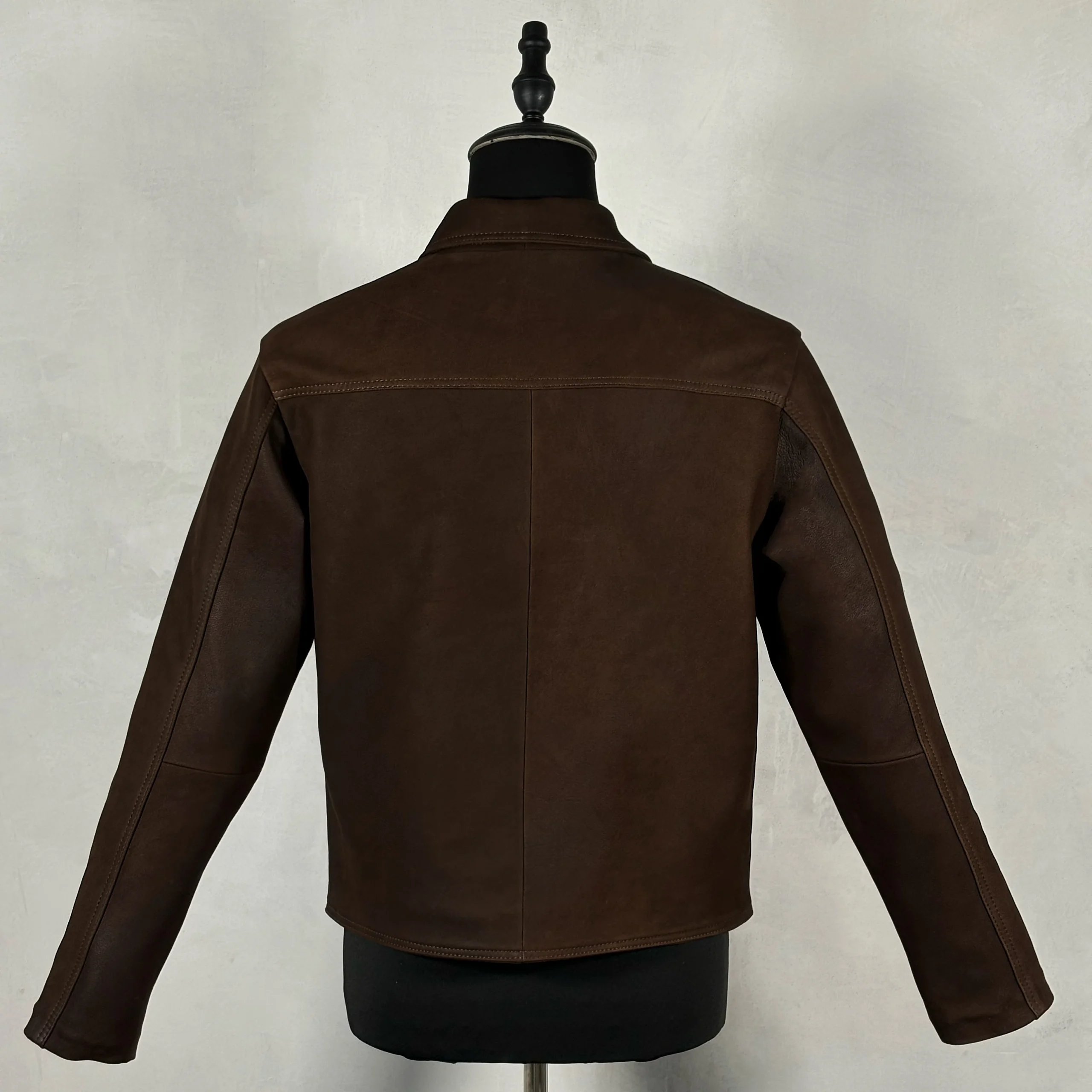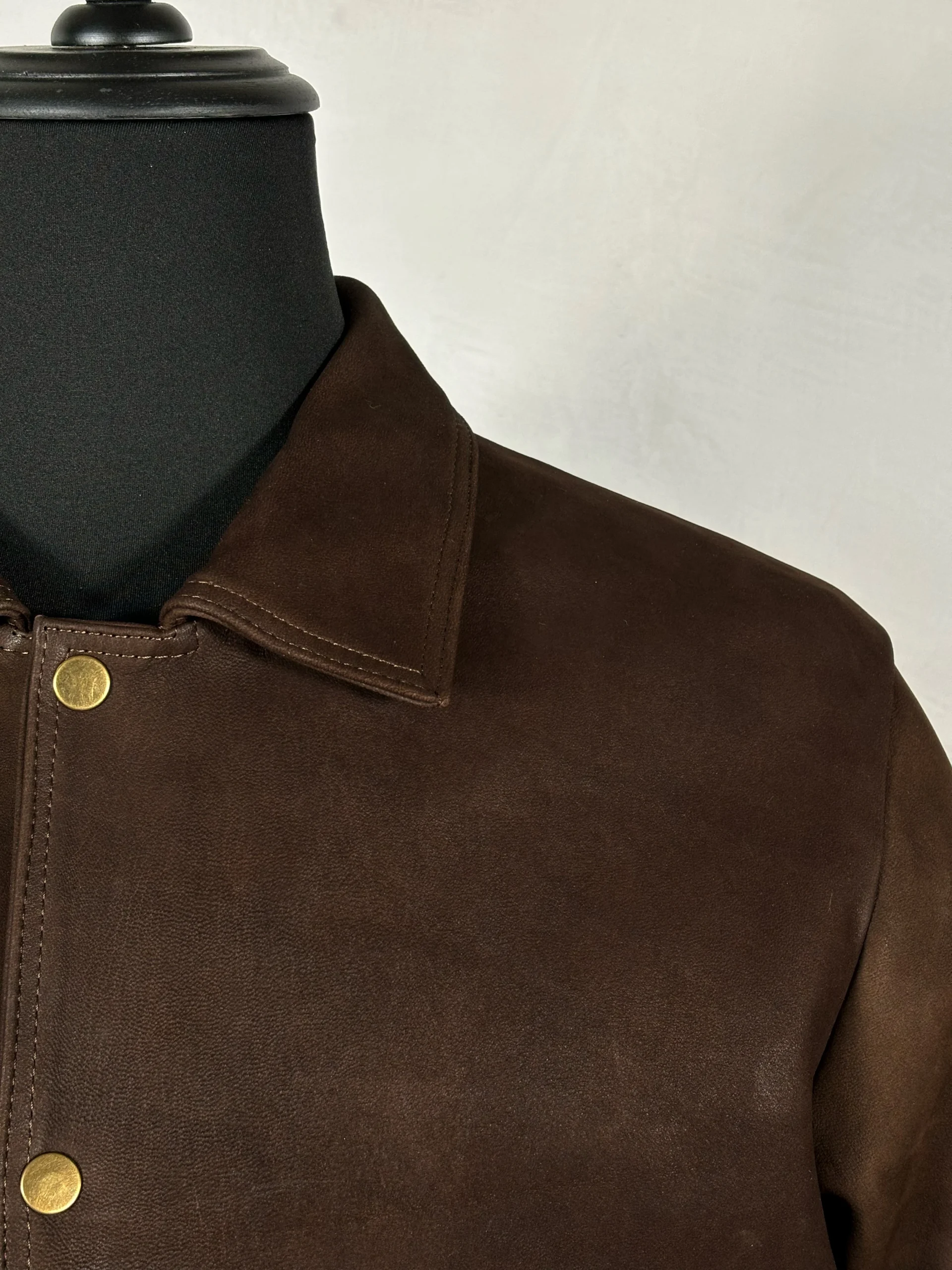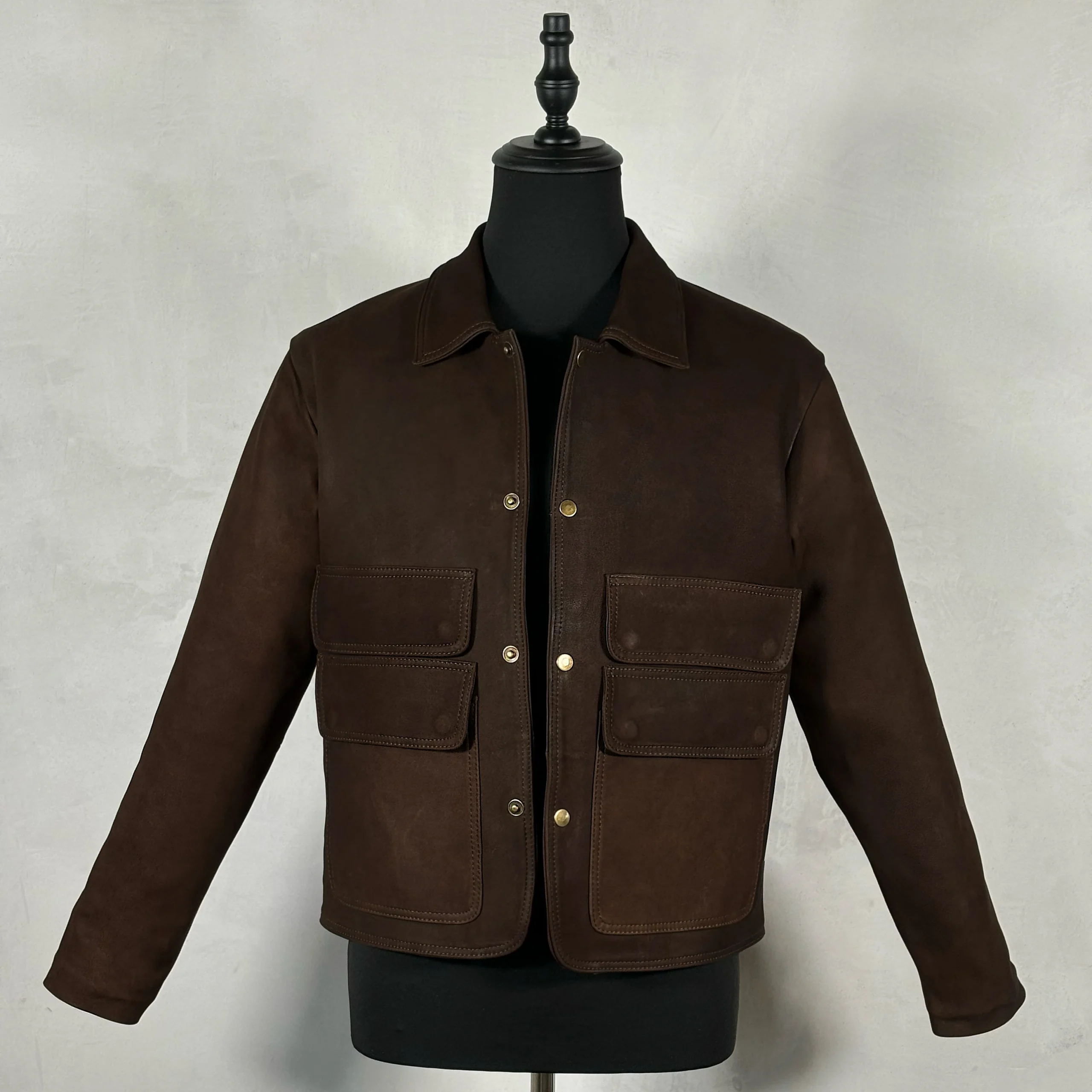 Chamarra de piel nobuck con broches y bolsas de cartera