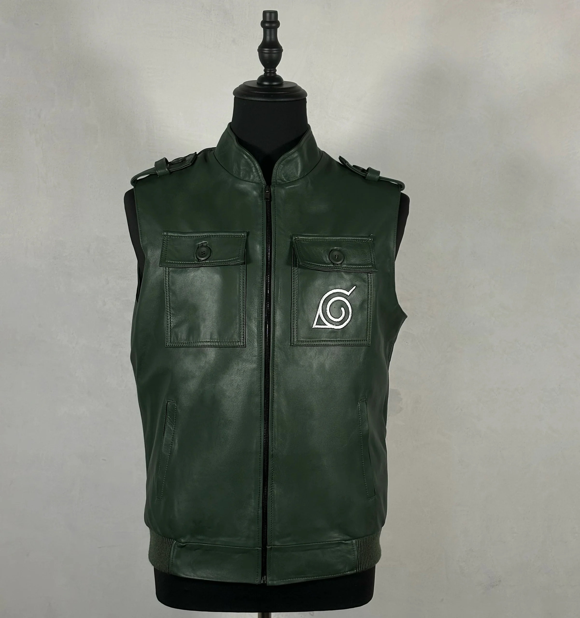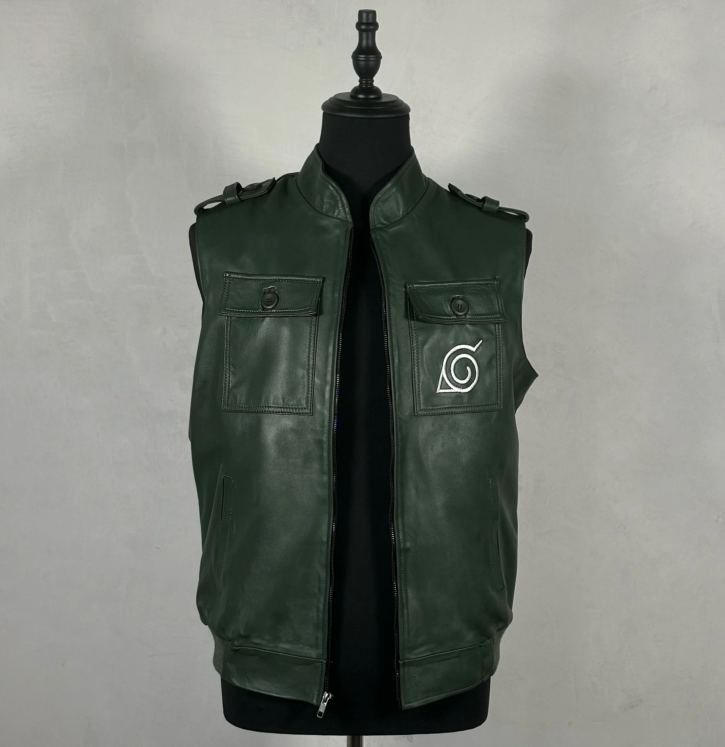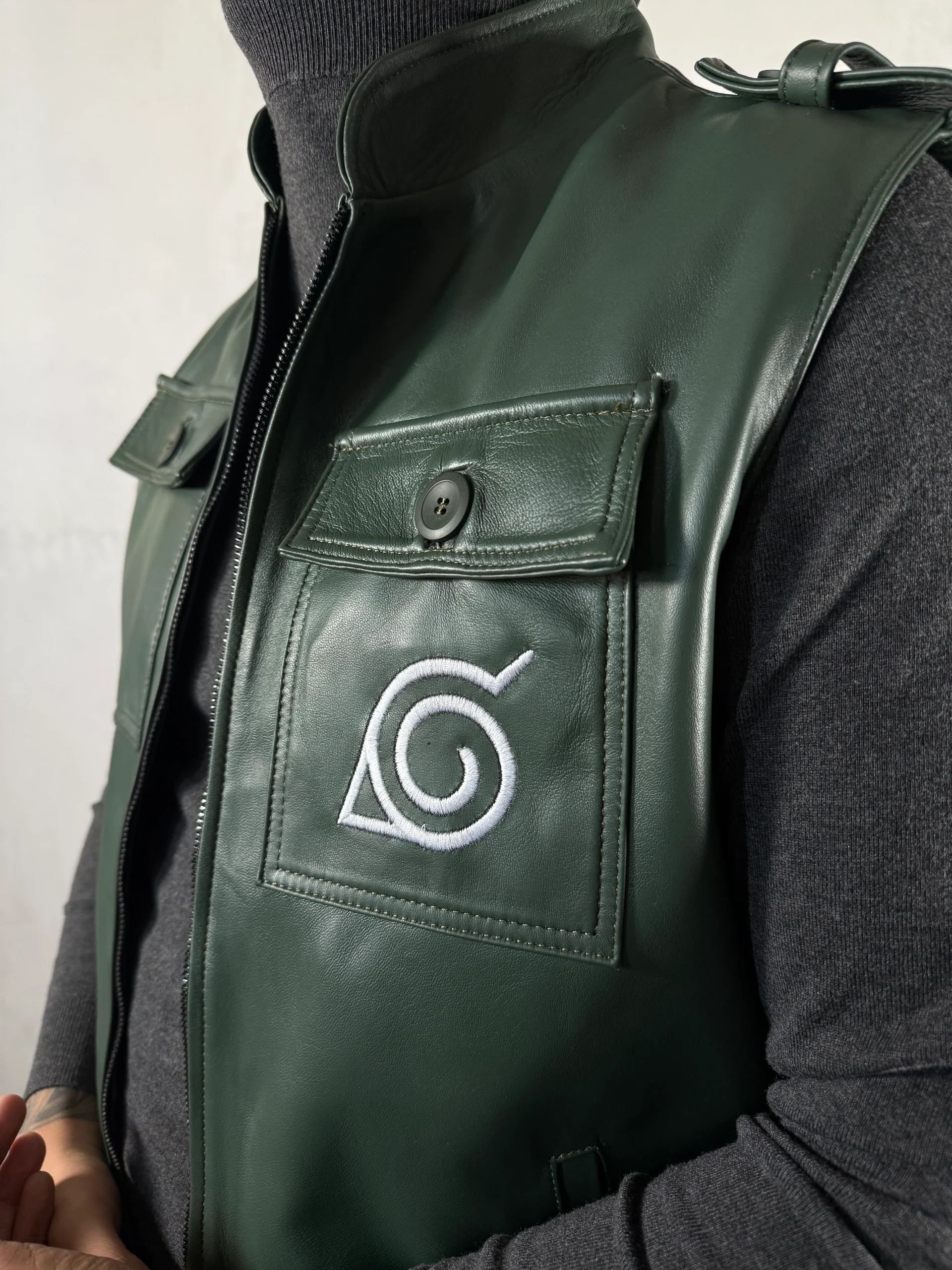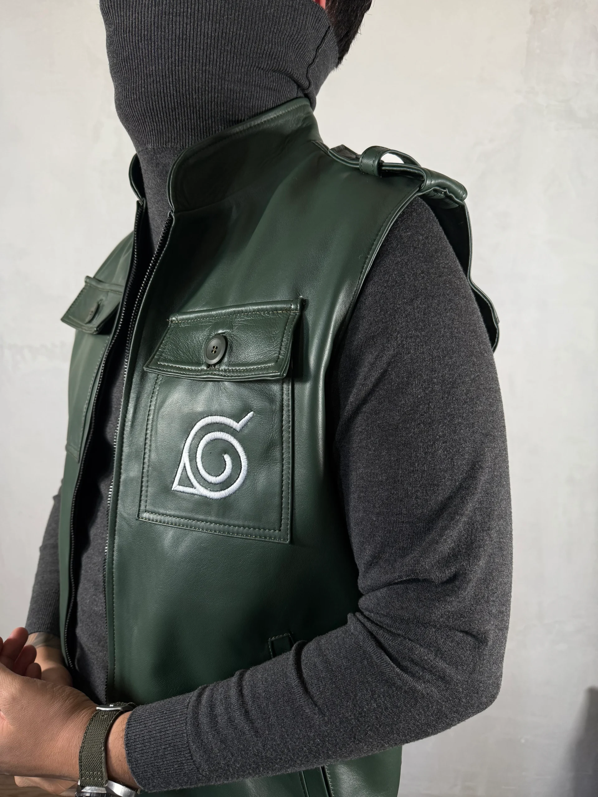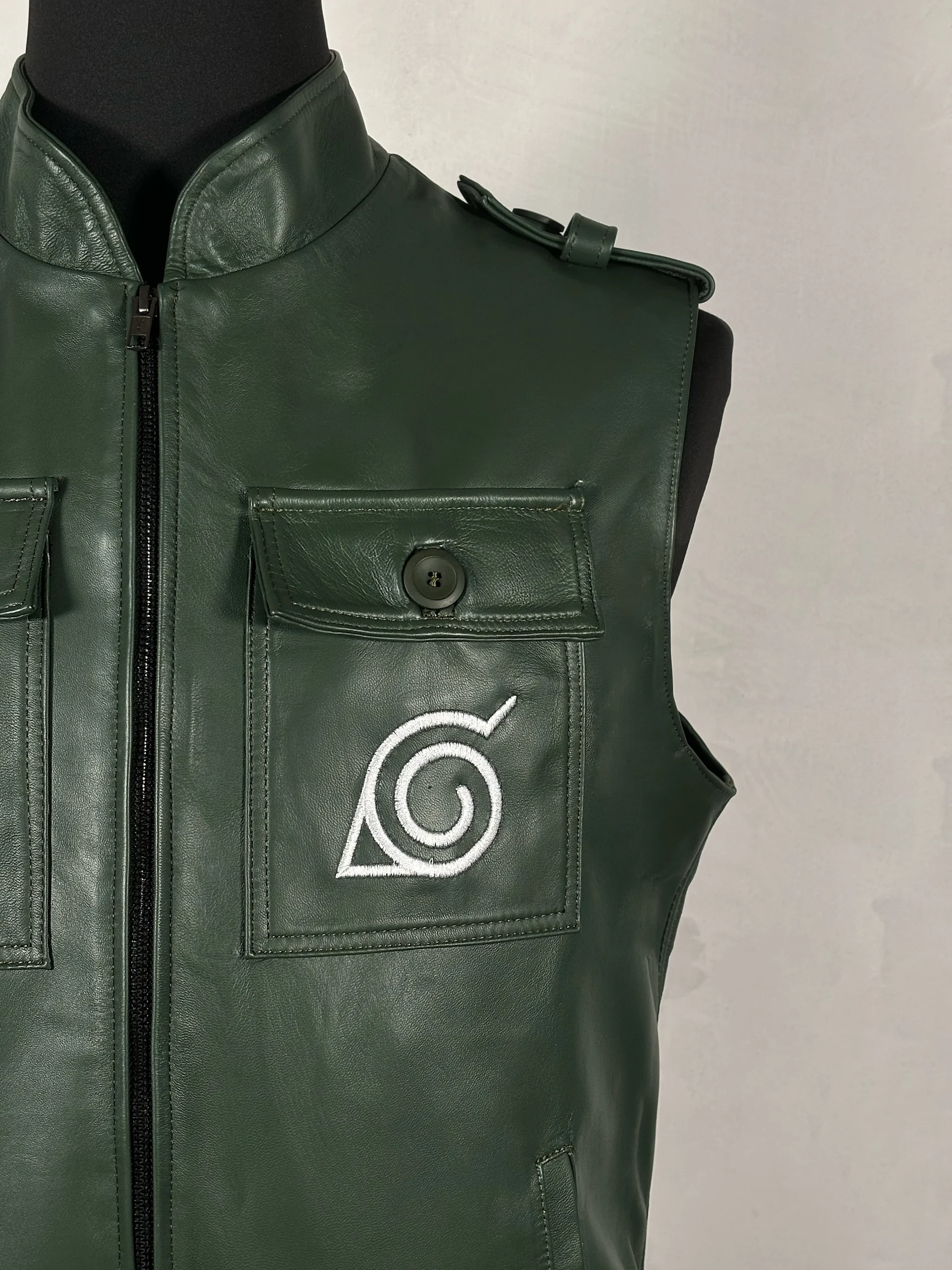 Chaleco de piel genuina con bordado