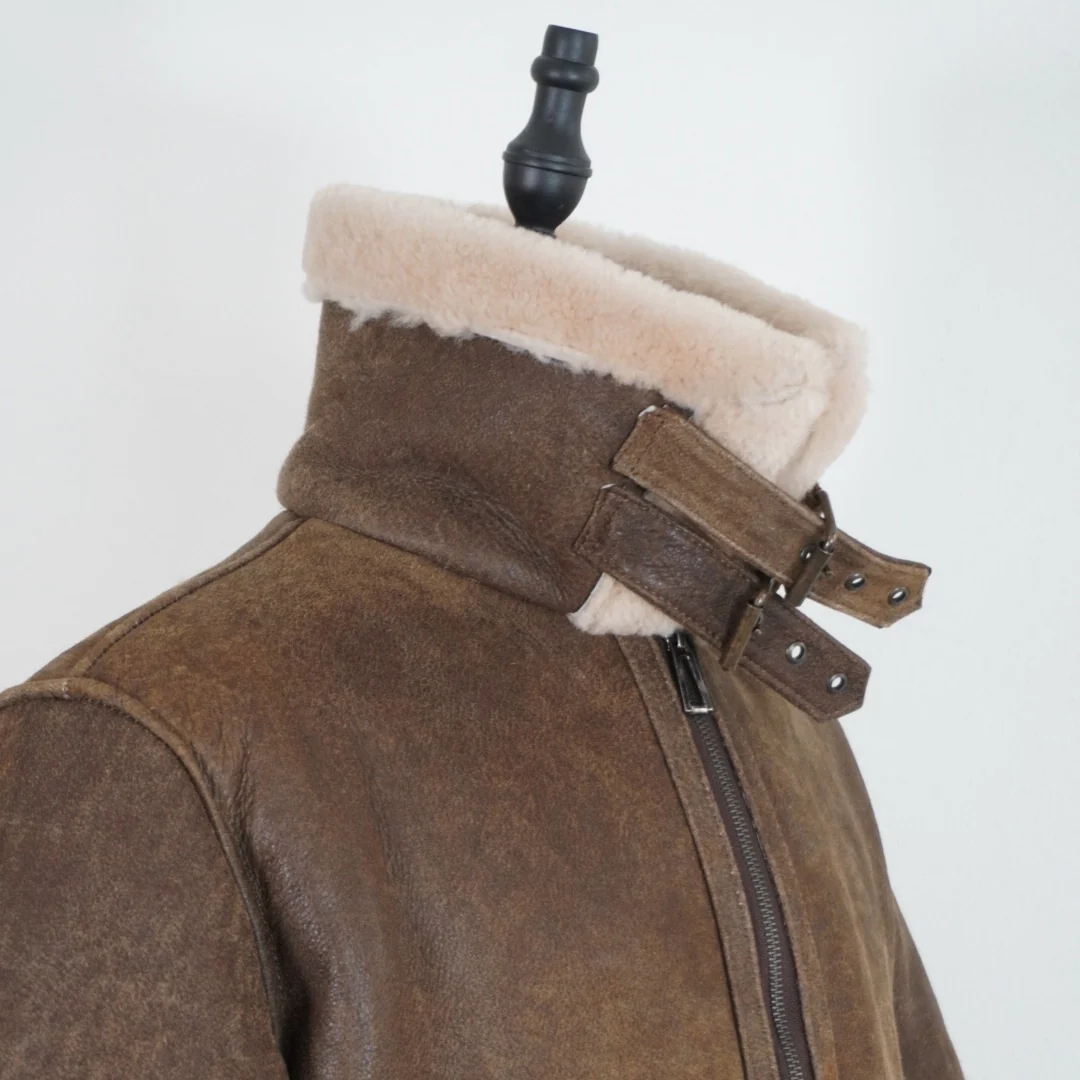 Chamarra de piel shearling tipo Biker con lana natural en todo el Interior Esta chamarra de oro viejo está inspirada en el icónico personaje de Leon S. Kennedy de Residen Evil. Confeccionada con materiales de alta calidad, es perfecta tanto para fans de la saga como para cualquiera que busque un estilo único y atractivo. Encarna el espíritu de aventura y protección con esta chamarra.