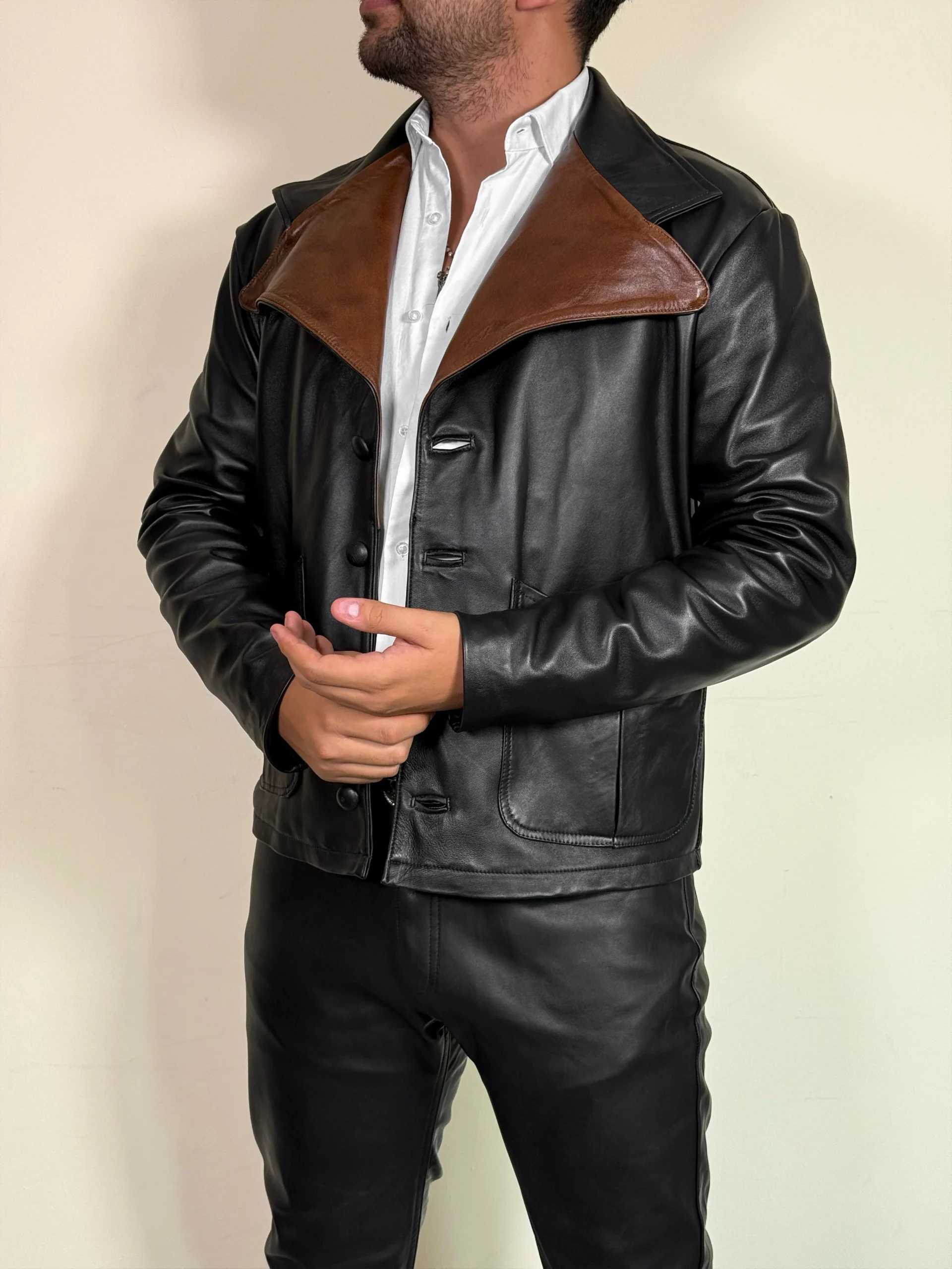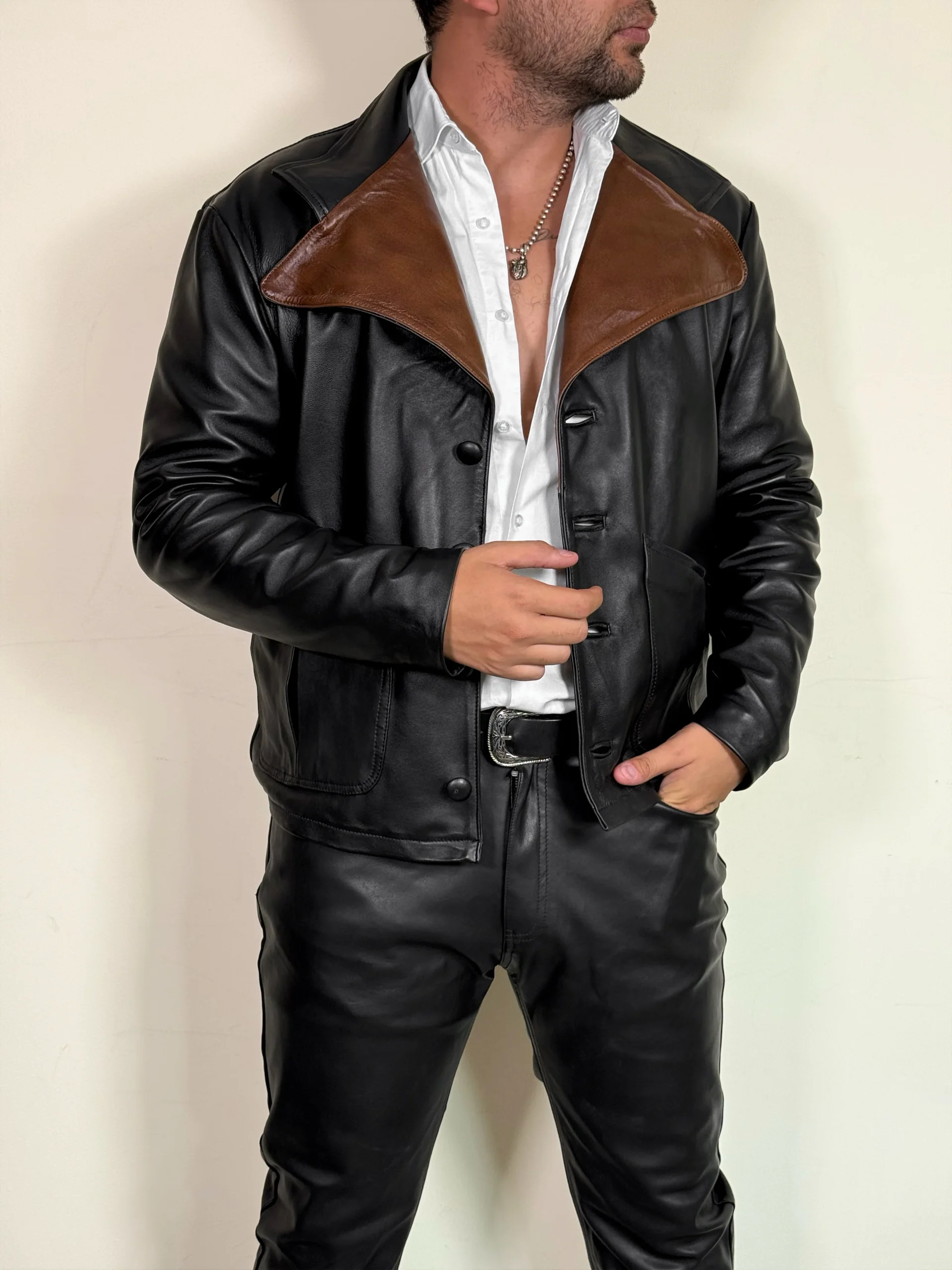 Esta chamarra de piel genuina es una verdadera declaración de estilo, inspirada en el famoso cantante Jim Morrison. Con los detalles oscuros más profundos, esta chamarra seguramente destacará en cualquier atuendo. Además, la piel genuina garantiza la durabilidad y la calidad de esta pieza de moda única.