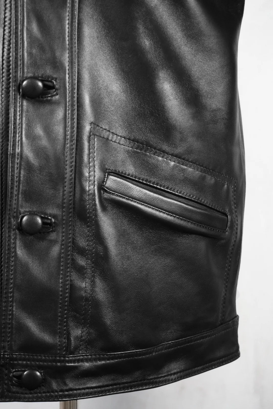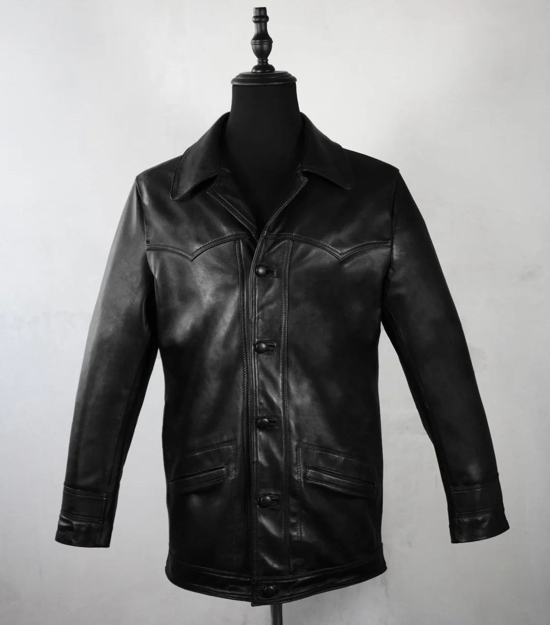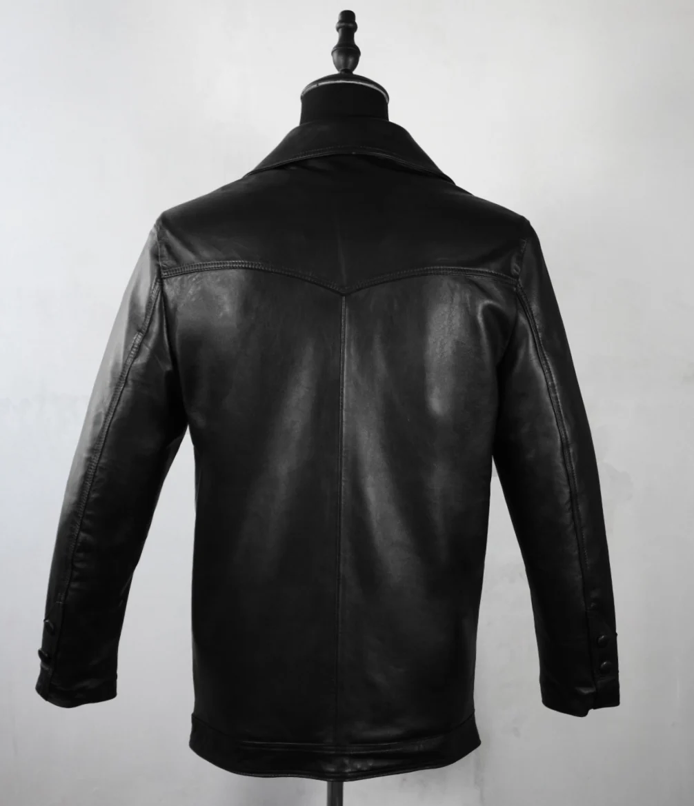 Esta gabardina de piel genuina estilo vaquero es una opción elegante y duradera para cualquier guardarropa. Con su color negro más oscuro, este abrigo ofrece un aspecto sofisticado y atemporal. La piel genuina garantiza la alta calidad y la durabilidad de esta prenda, lo que la convierte en una inversión que durará años.