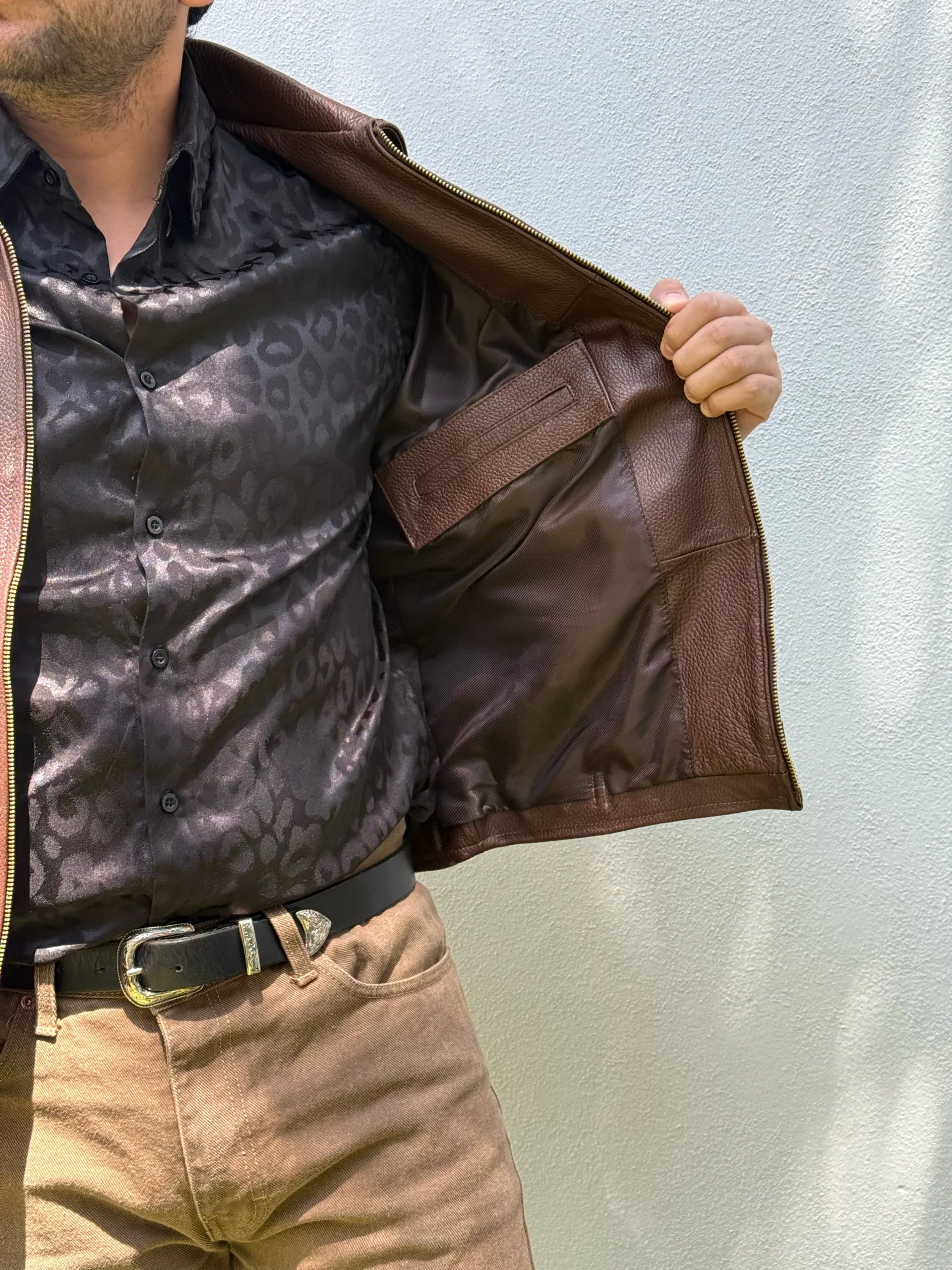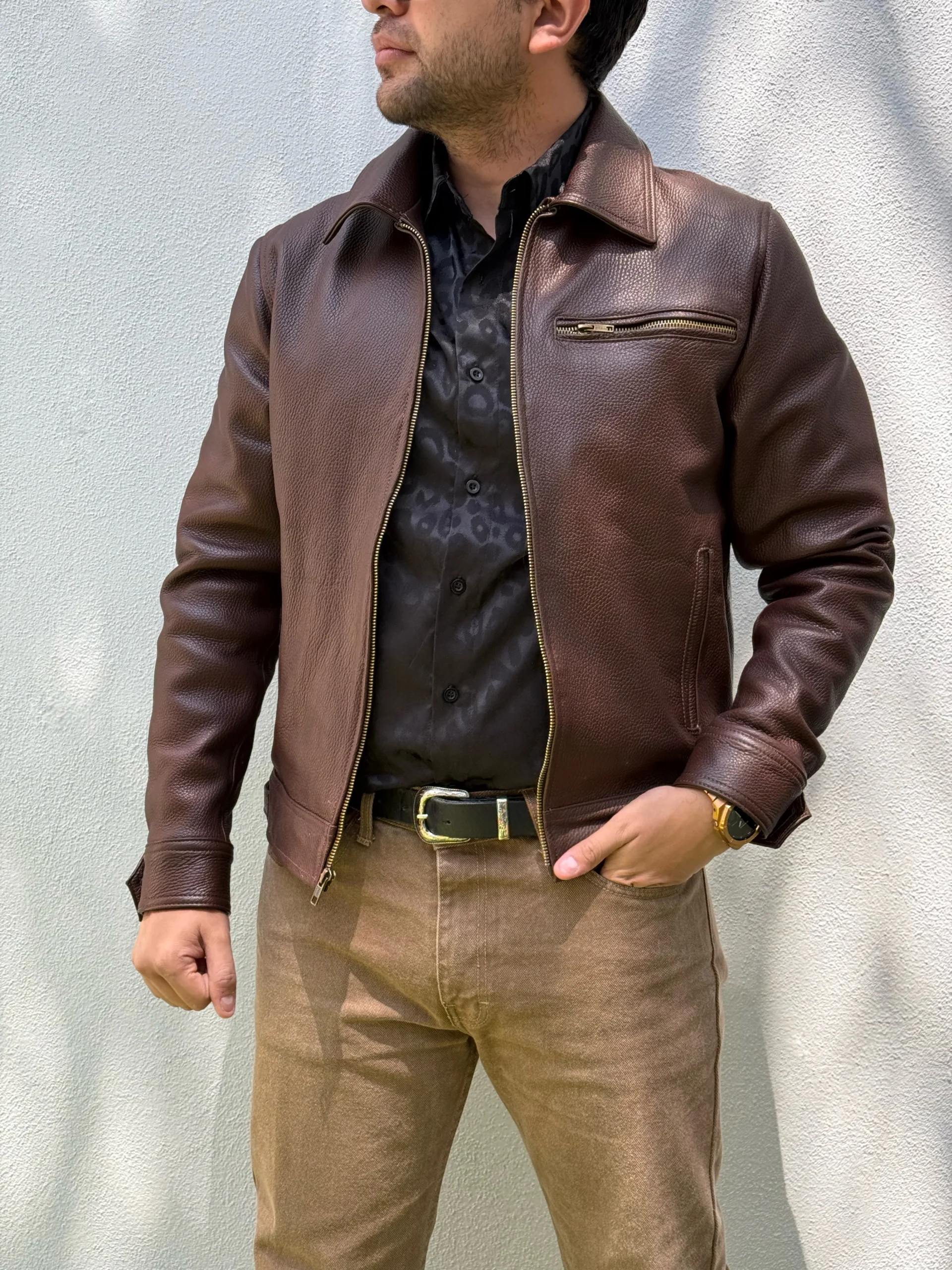 Esta chamarra de piel vacuna es la opción perfecta para aquellos que buscan un estilo audaz y resistente. Hecha con piel gruesa y resistente, ofrece un acabado elegante y duradero. Su diseño clásico y atemporal lo hace adecuado para cualquier ocasión. ¡Añade un toque de carácter a tu guardarropa con Osaka darkest black!