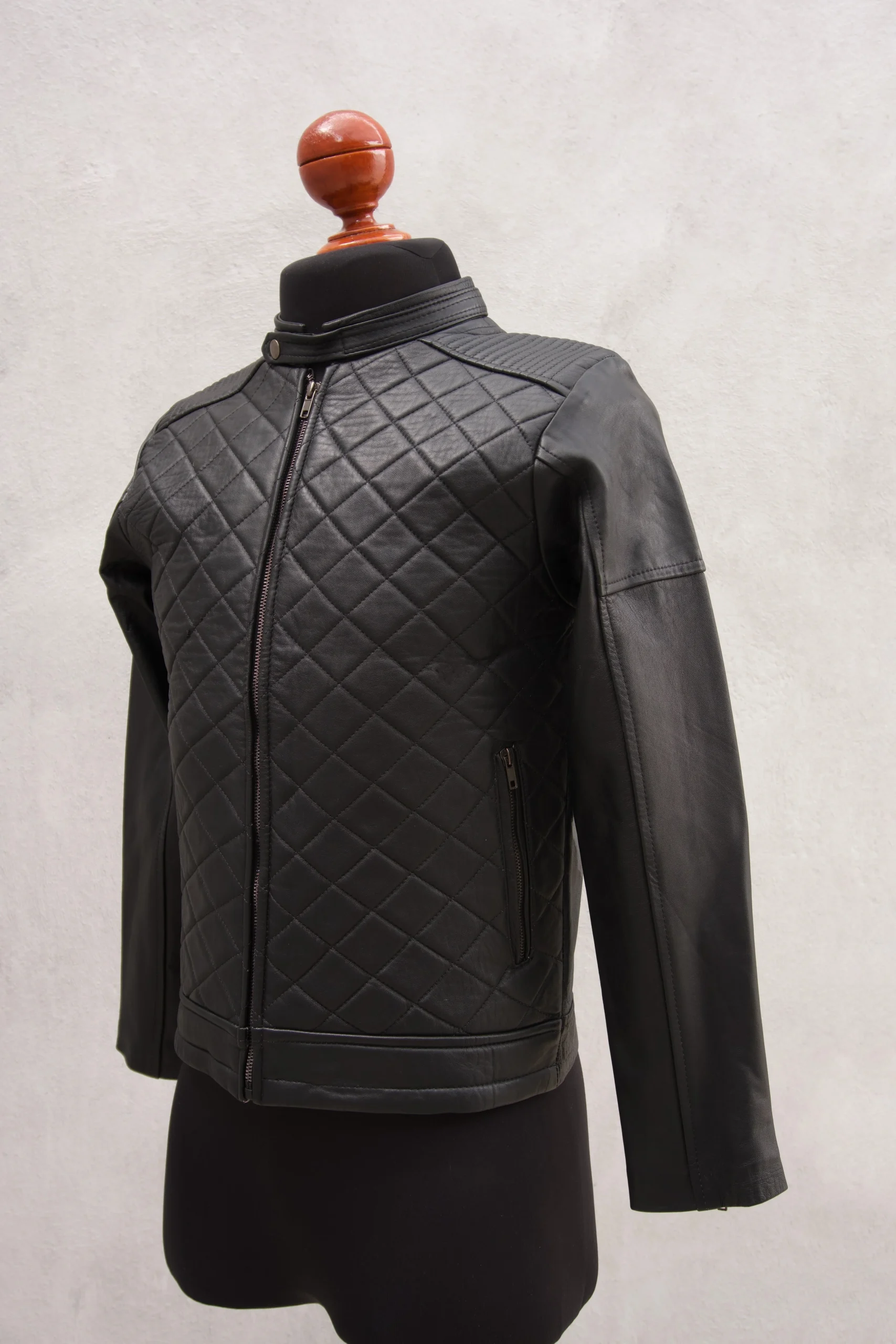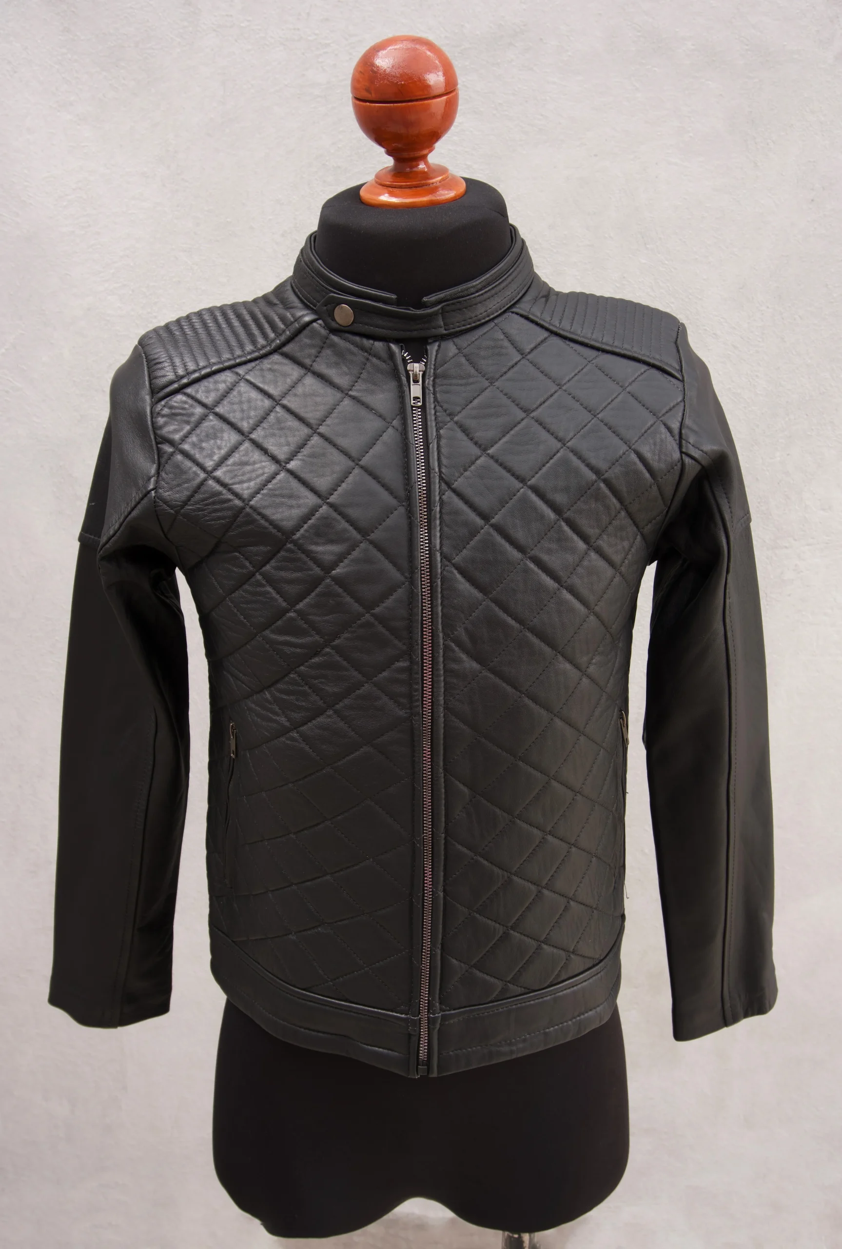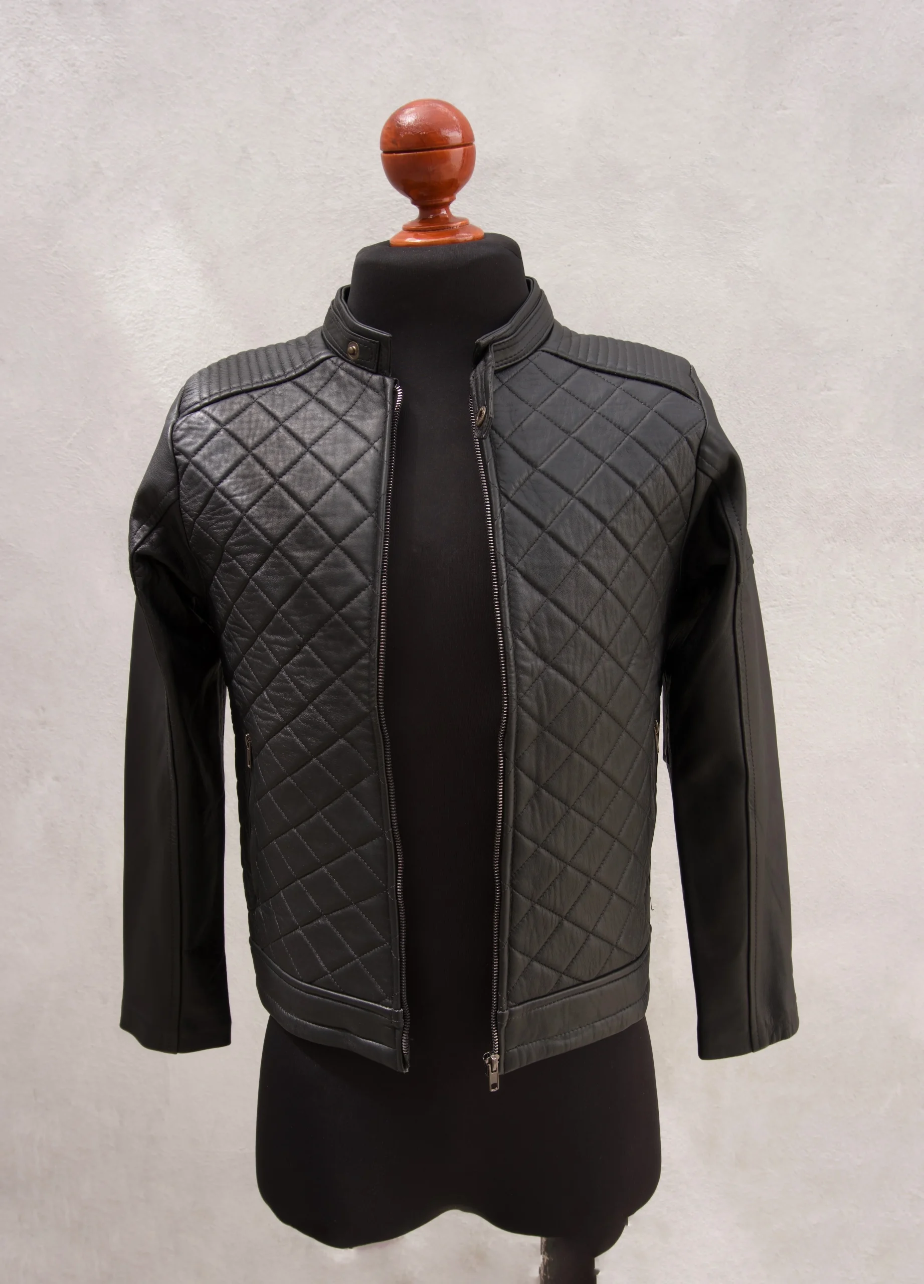 Esta chamarra Rooster es una prenda versatil para cualquier ocasión. Confeccionada en piel de Borrego suave al tacto, cuenta con un patron de rombos acolchonados en el frente para mayor comodidad y estilo único. Grábate en la moda con esta intemporal prenda de color negro más oscuro.