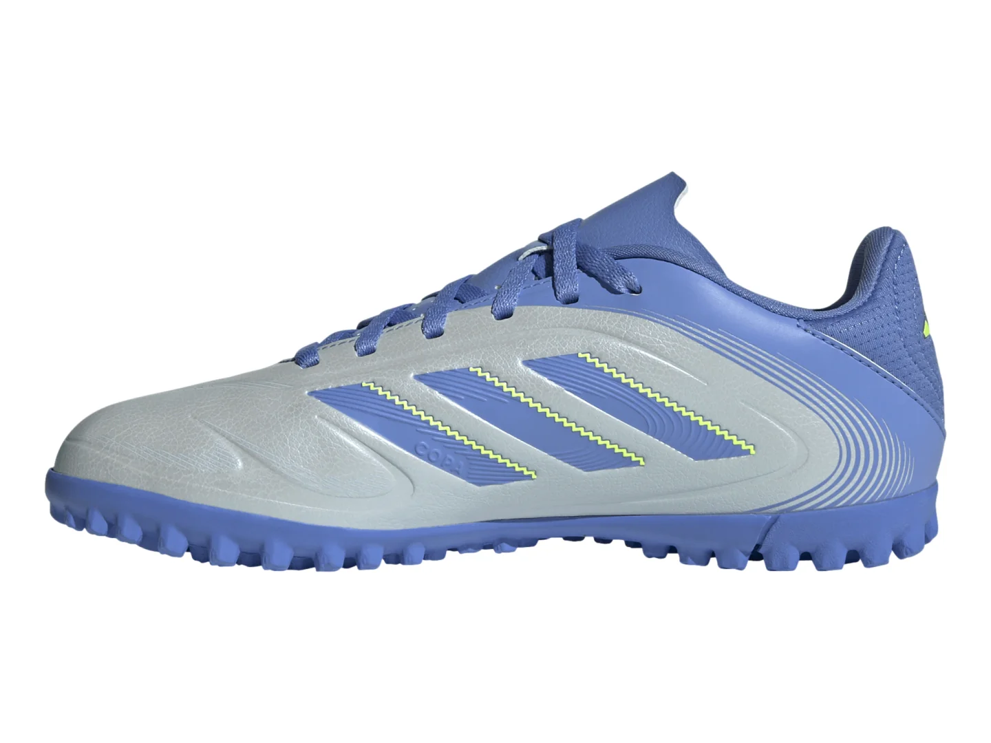 Los Adidas Copa Pure 3 Club TF J IE1186 para niño están diseñados para canchas de césped sintético gracias a su suela de caucho ranurada con multitacos que brinda estabilidad y agarre en juegos rápidos. Su exterior sintético suave tipo cuero con textura granulada y estampado 3D en el antepié mejora el control del balón, mientras el ajuste con cordones ofrece comodidad segura. Fabricados con al menos 20% de materiales reciclados, son ideales para partidos y entrenamientos en CDMX, Guadalajara, Monterrey y más ciudades de México. Disponibles en Calzzapato con envíos rápidos a nivel nacional.