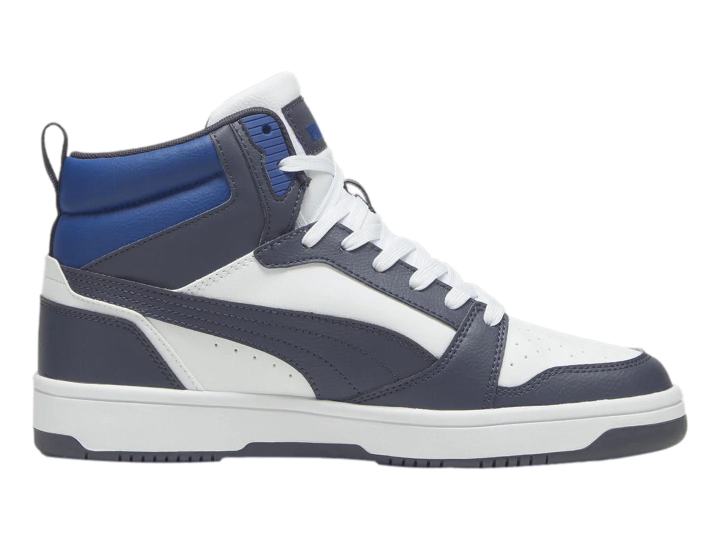 El modelo **PUMA Rebound V6 Mid** es un calzado de media caña que fusiona el estilo clásico del baloncesto con características modernas para ofrecer comodidad y soporte en el uso diario. Este modelo es ideal para quienes buscan un calzado versátil que combine un diseño retro con las comodidades modernas, adecuado para el uso diario y diversas actividades.
